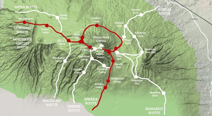 The Northern Circuit is the newest and longest route on Mount Kilimanjaro. It begins in the West at the Londorossi Gate and follows the same path as the Lemosho route for the first two days. After crossing the Shira plateau the path veers north near Lava Tower, following the longer Northern Circuit instead of the more popular Southern Circuit via Barranco Valley The route circles around the quieter northern slopes to the east side of the mountain. The Northern Circuit is longer than the other trails on Kilimanjaro, taking a minimum of eight or nine days to complete. The eight-day trek skips the additional acclimatization day that is usually spent at Shira Camp 2 and continues straight on to Moir Camp.